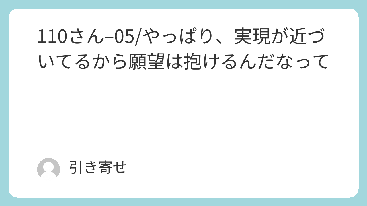 そんな、一見自分じゃどうしようもできないような事なのに、「したい」と思ったら、実現してるということは、やっぱり、実現が近づいてるから願望は抱けるんだなって。