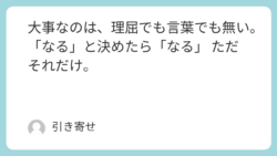 大事なのは、理屈でも言葉でも無い。 「なる」と決めたら「なる」 ただそれだけ。