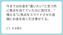 お金 今まではお金を“遣いたい”と言う所に焦点を当てていたのに気付き、“増える”に焦点をスライドさせた途端にお金を良く引き寄せてる。