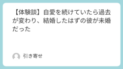 恋愛 【体験談】自愛を続けていたら過去が変わり、結婚したはずの彼が未婚だった